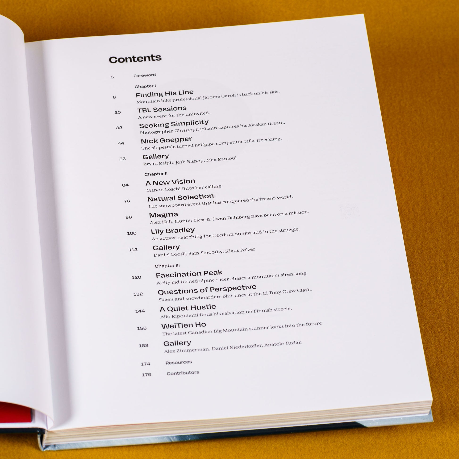 Volume 6 captures bold transformations: Jérôme Caroli abandons mountain biking to reclaim his skis, Christoph Johann ventures into untamed Alaskan terrain, and Nick Goepper bridges slopestyle and halfpipe. Witness Manon Loschi's fearless ascent, the revolutionary Natural Selection Ski event, and Ailo Riponiemi's raw urban passion. The El Tony Crew Clash shatters barriers between skiers and snowboarders, while WeiTien Ho emerges as Canadian freeride's most audacious voice. Lily Bradley balances activism and skiing, and TBL Sessions and Magma showcase athletes pushing boundaries in all directions.